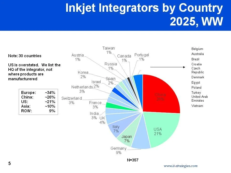 Figure 1 Number of Inkjet Integrators by Country of Origin, 2025 WW